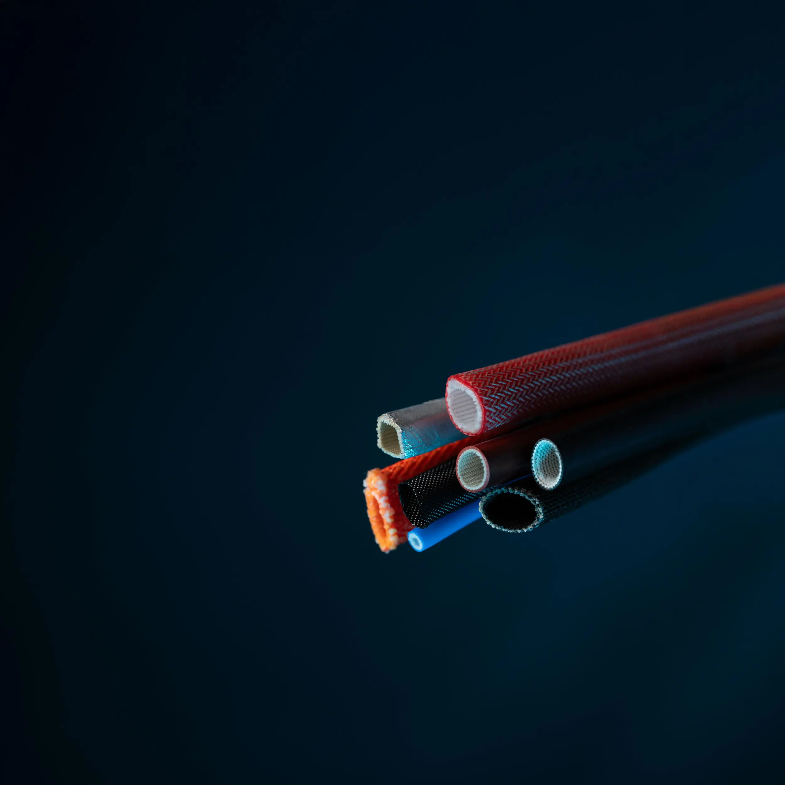 Our textile cable protection systems made of glass fibre offer maximum temperature resistance, mechanical stability and electrical insulation – made in Germany. Whether acrylic, silicone or aluminium-coated, our solutions are flexible, durable and customisable.